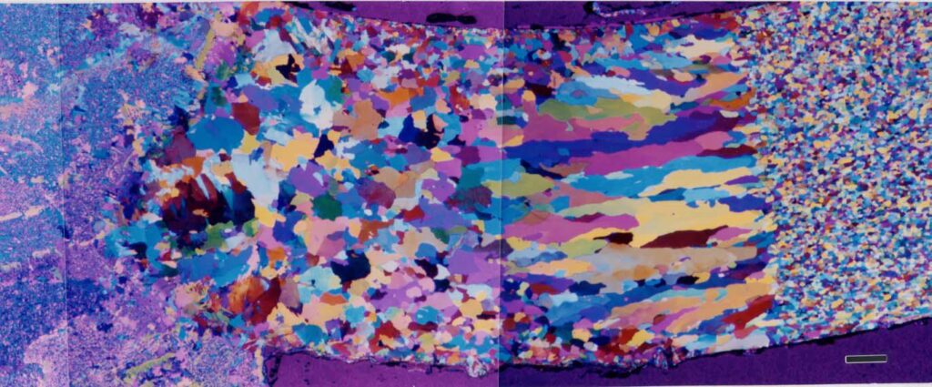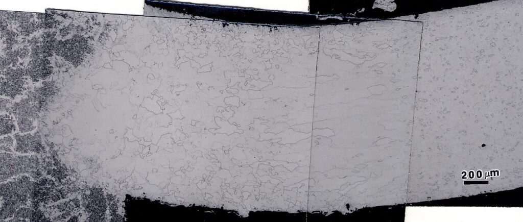 – در قطعات ریختگی، یک مقطع برش عمود بر سطح میتواند تغییرات ریزساختار از سطح خارجی به سمت مرکز مشخص نماید.